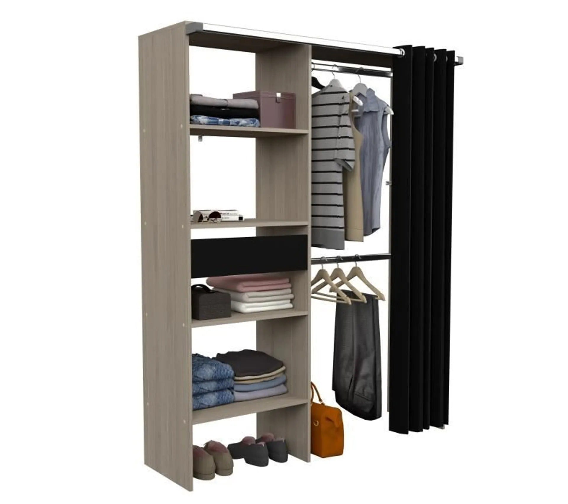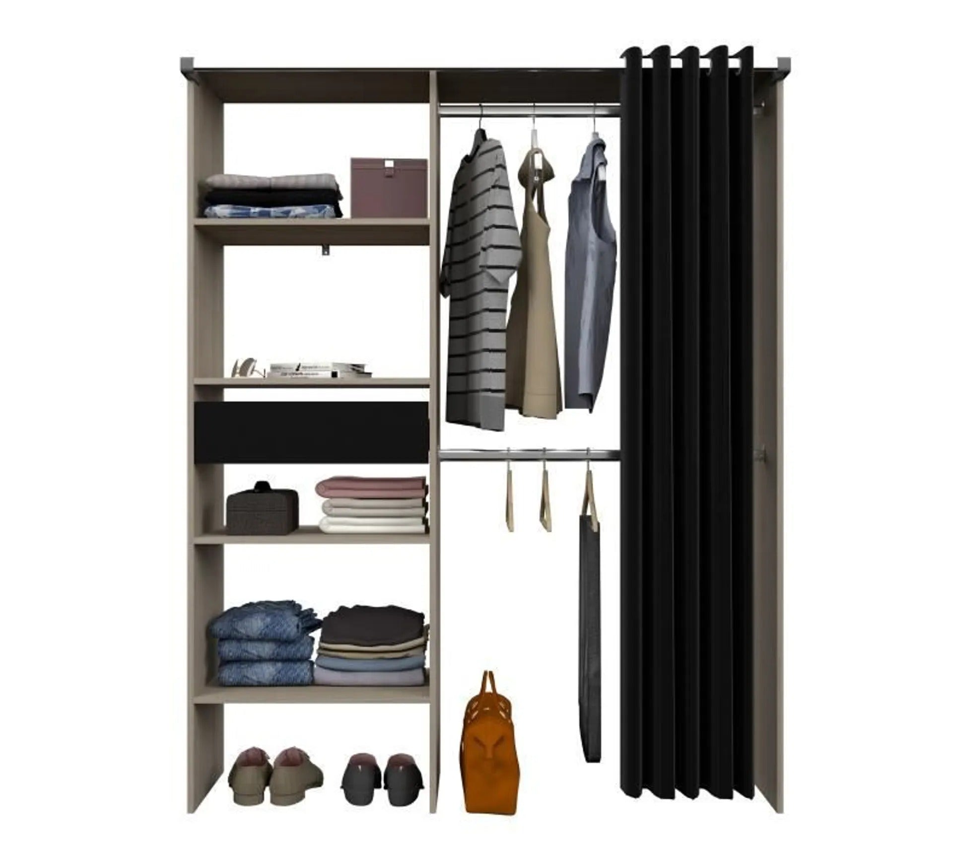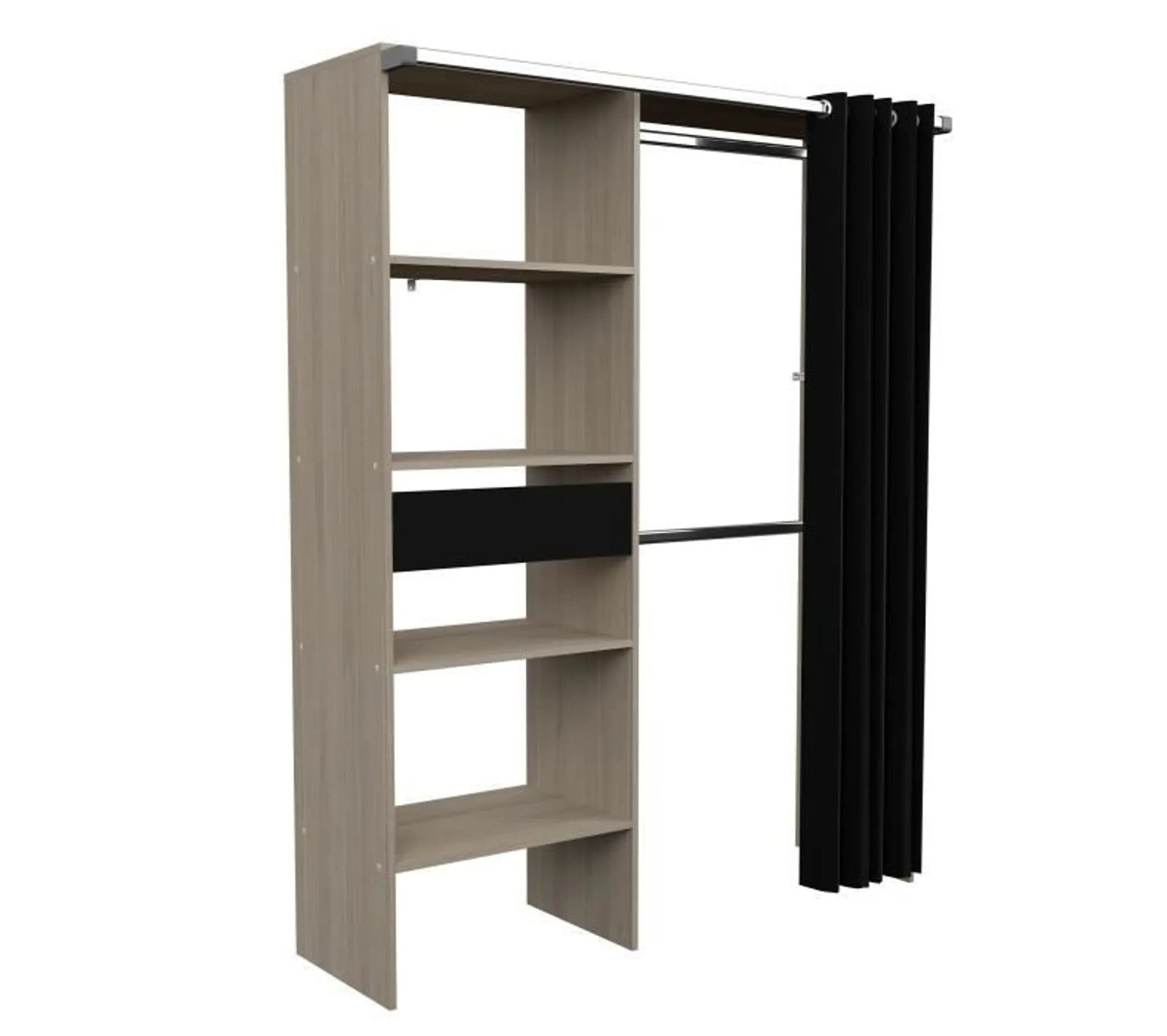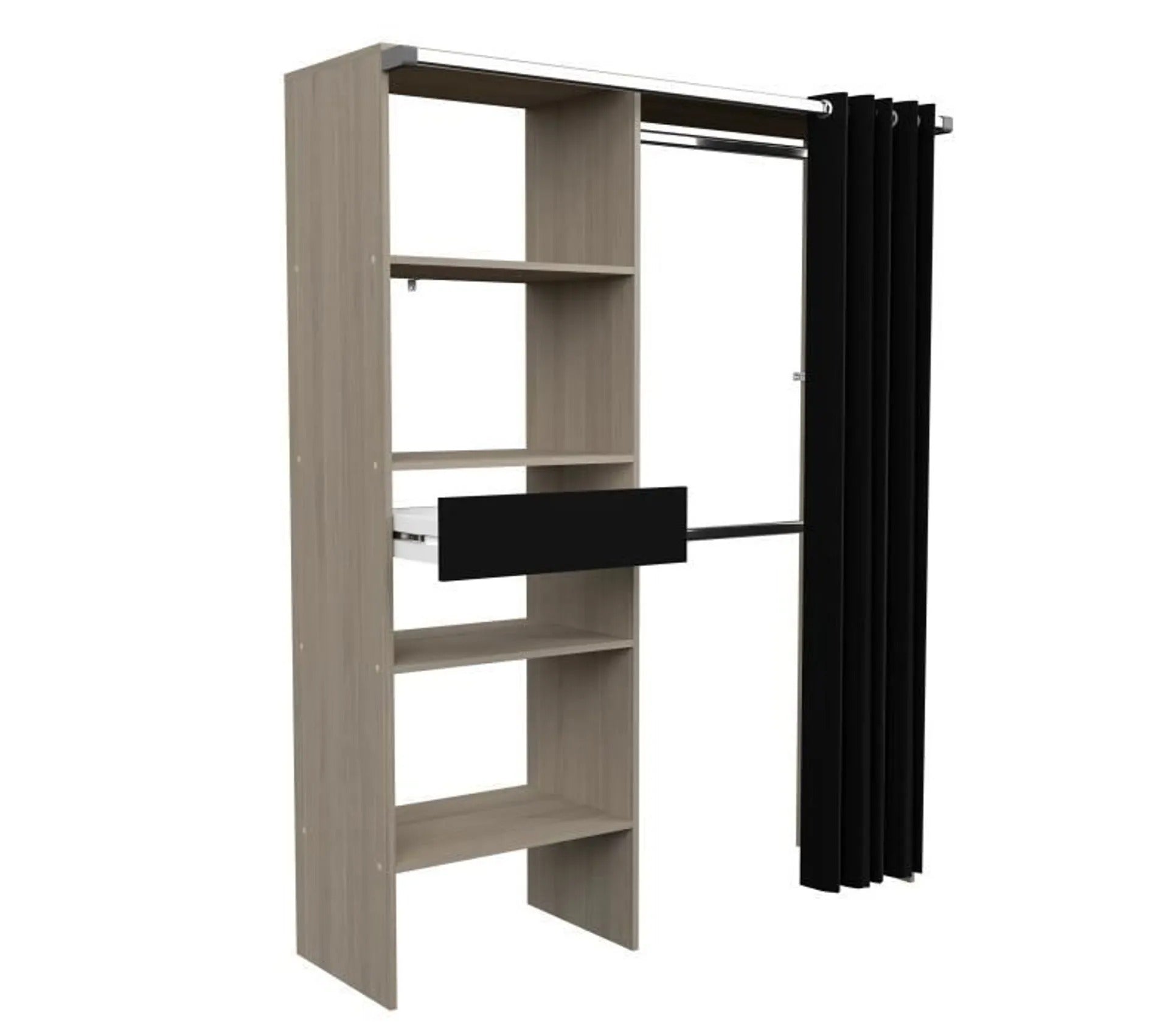 Aménagement De Placard Avec Rideau - Décor Indus - 1 Colonne Avec 1 Tiroir + 2 Penderies - Bari