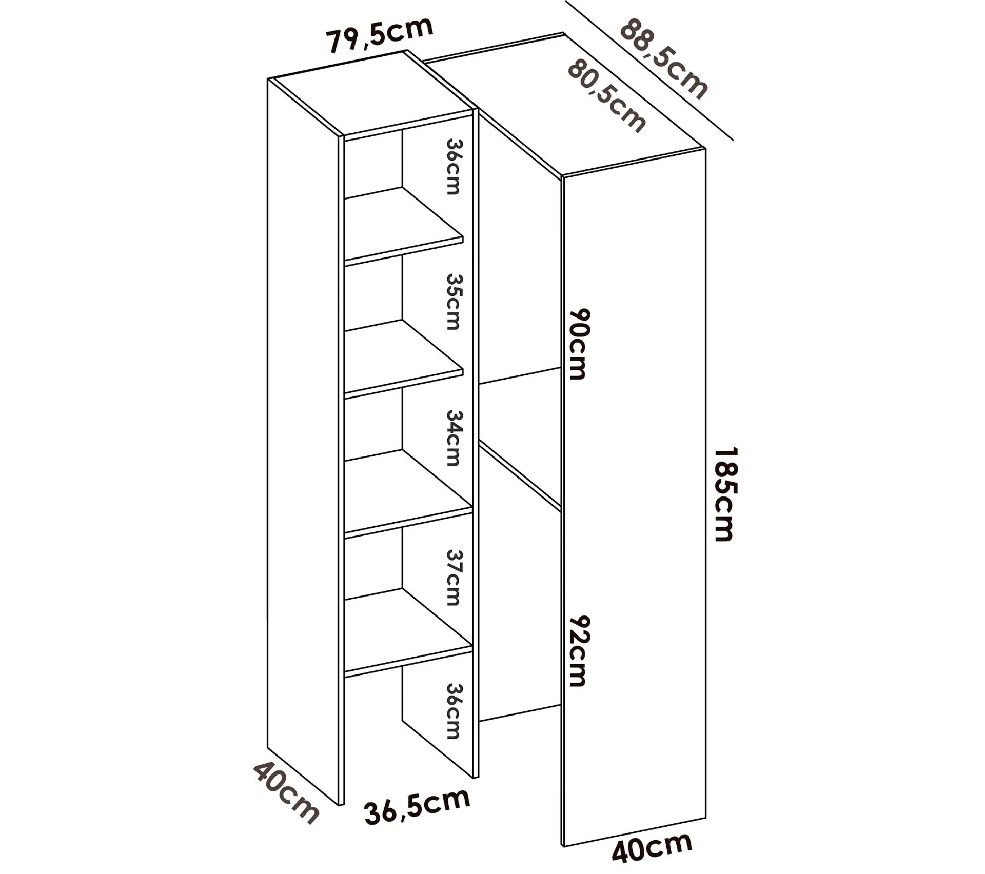 Dimensions : longueur 79.5 x profondeur 88.5 x hauteur 185 cm
