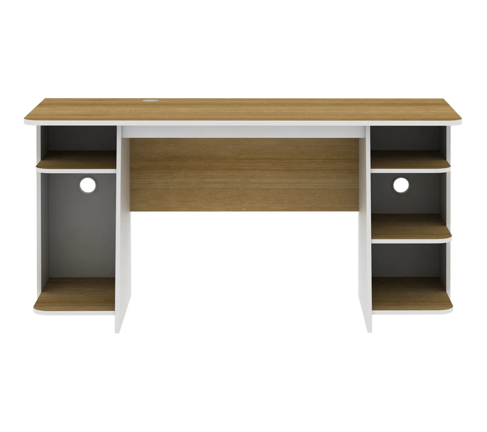 Le design de ce bureau blanc et imitation chêne vous permettra de profiter d'un meuble contemporain, facile à associer avec tout style de décoration. Vous pourrez le marier à un fauteuil blanc pour créer un ensemble coordonné. Robuste, ce bureau est réalisé en panneaux de particules. Son plateau peut soutenir jusqu'à 75 kg.