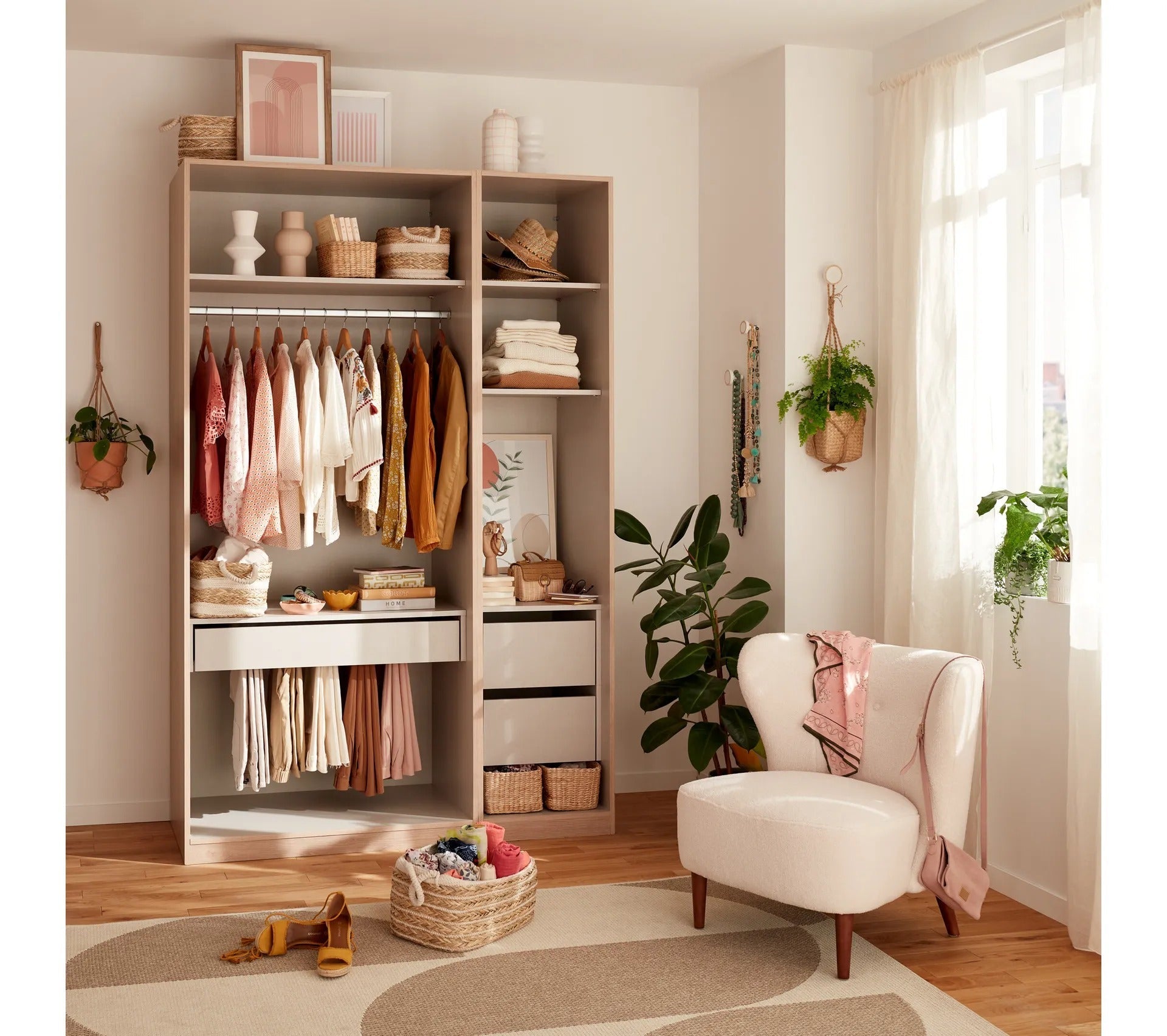Élégante avec sa finition bois clair, ce caisson imitation chêne apporte une note fraîche dans la décoration de la chambre à coucher. Pour renforcer son côté nature, on l'associe aux portes de la gamme Extenso imitation chêne ou Campagne. Pour créer un effet de contraste, on l'habille de portes blanches, mates ou vernies