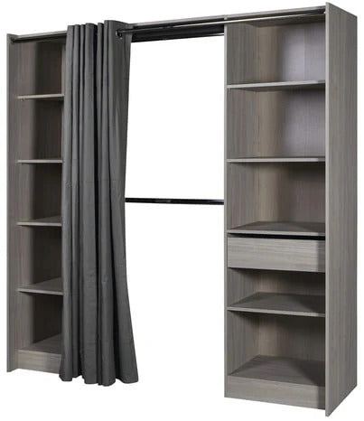 Il est possible d'intervertir les 2 colonnes. En plus d'être esthétique, le rideau protège vos vêtements. Les étagère peuvent supporter jusqu'à 26 Kg.