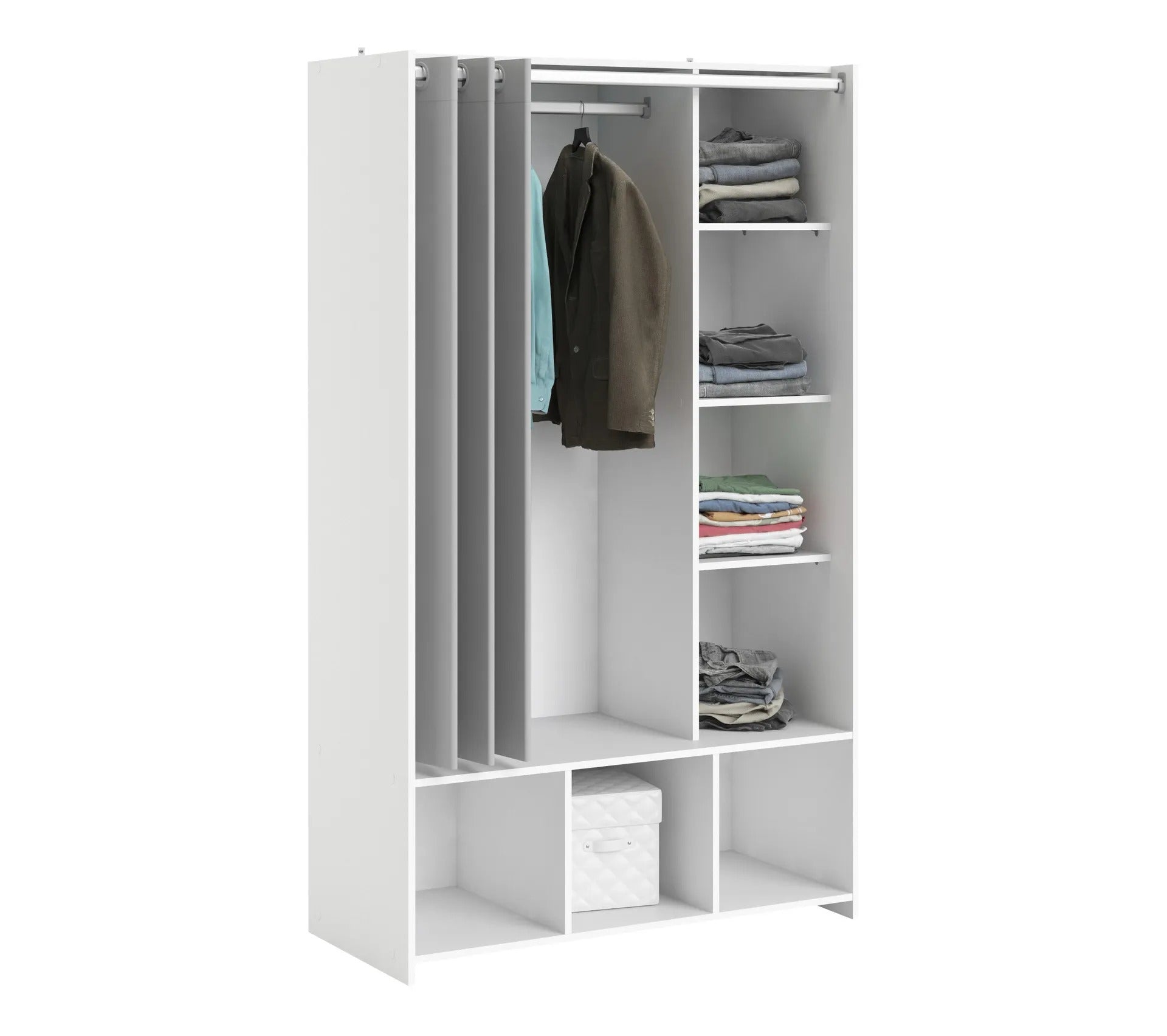 Grâce à ses teintes neutres, ce kit dressing blanc avec un rideau gris s'adapte à tout type d'univers. Vous pourrez l'associer à une commode blanche ou un chiffonnier gris, par exemple. Réalisé en panneaux de particules, ce kit dressing se montrera solide au fil du temps.