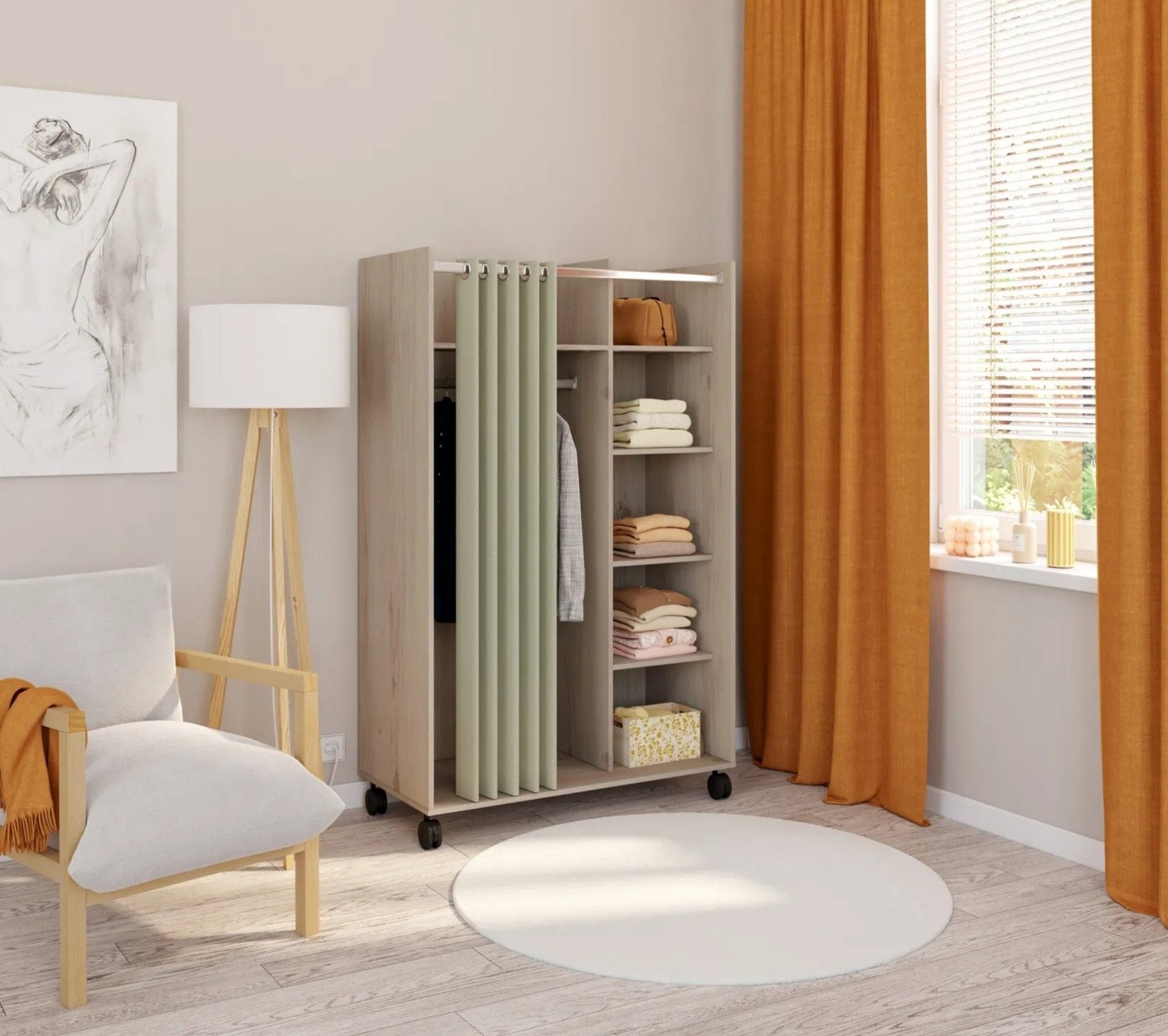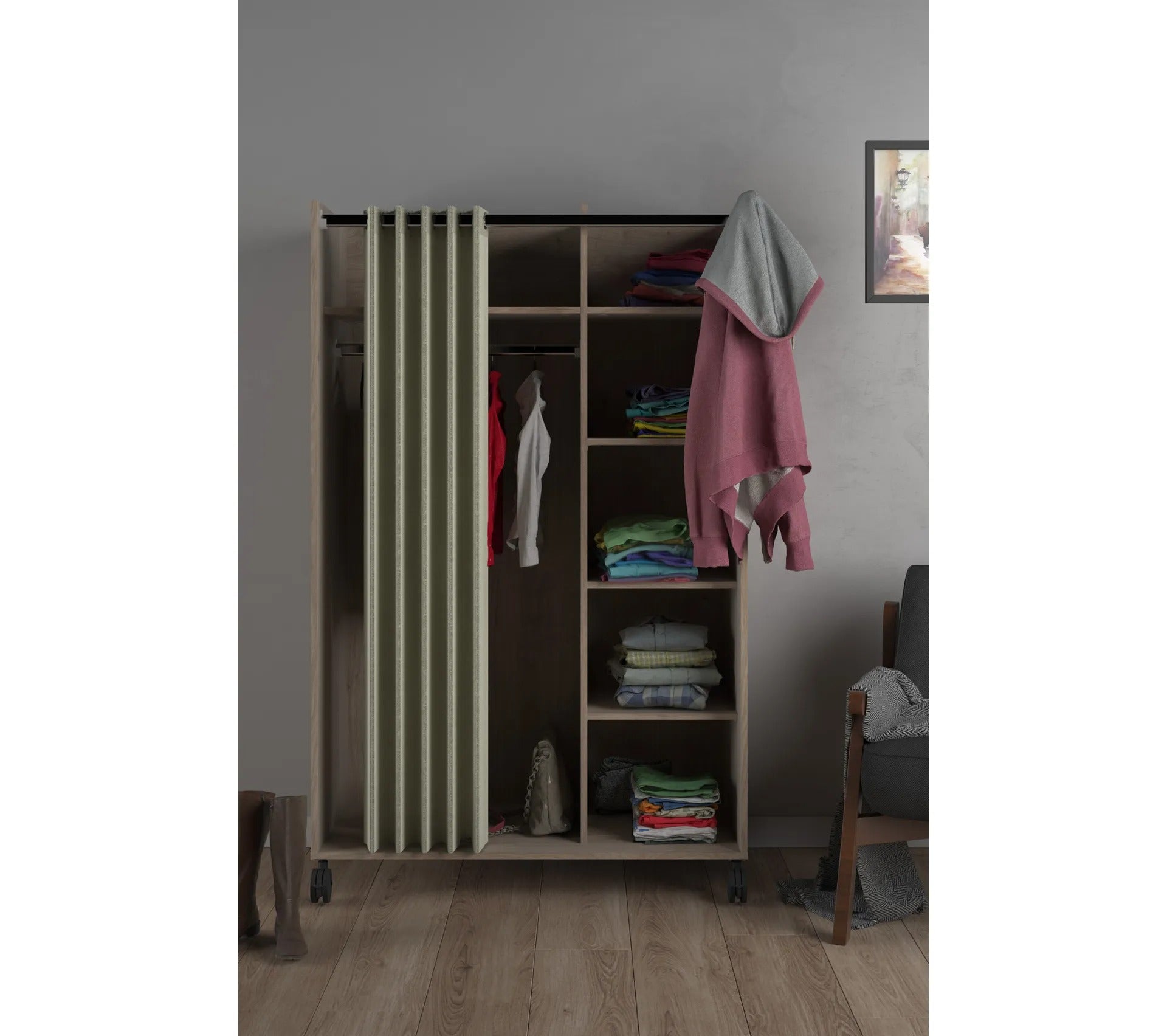 Kit dressing avec rideau L.100 cm MOVE 2 imitation chêne