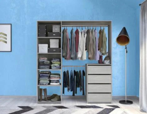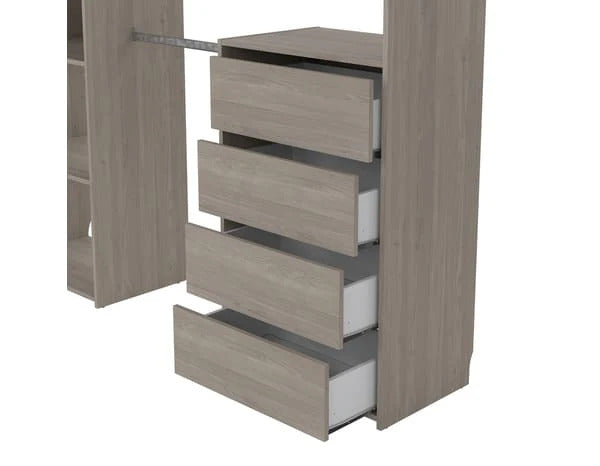 Ce dressing "Karisma" est en PPSM, ép. 16 mm. Décor imitation chêne grisé. Il est composé de :